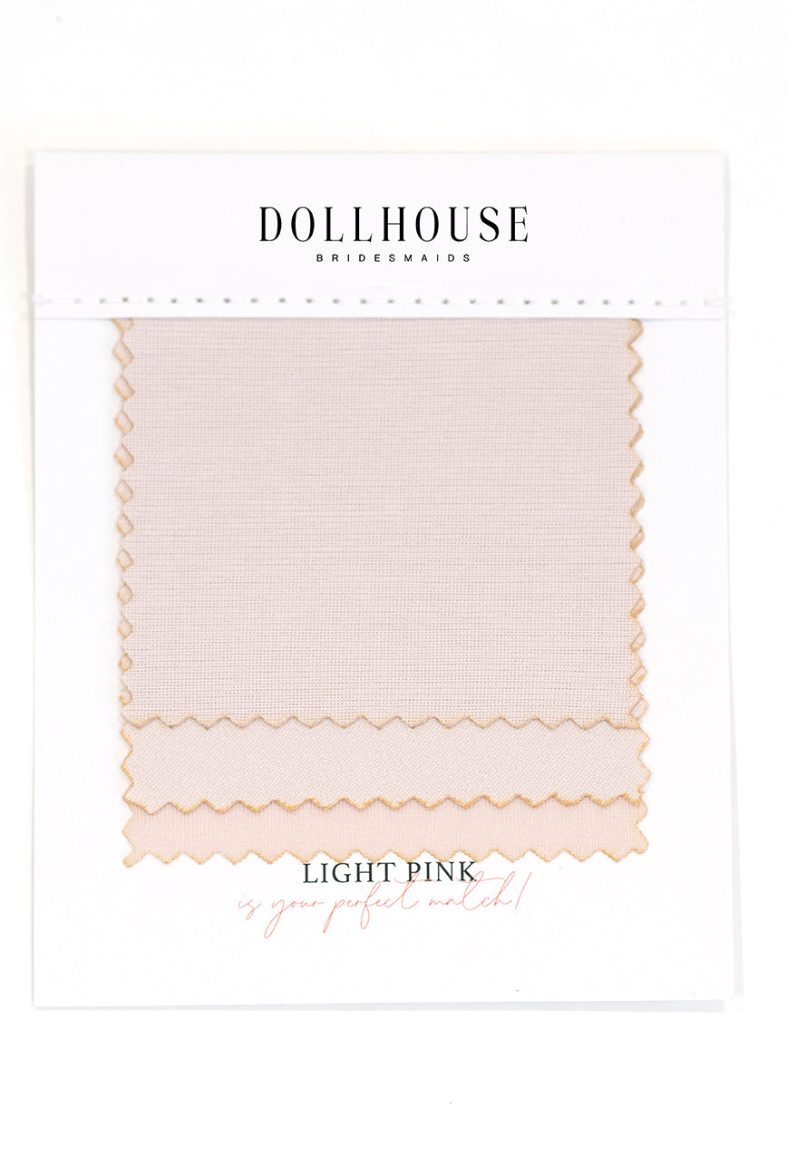 If you want to see our stunning fabric options up close, we’ve made it easy! Our bridesmaids dress swatches are available in one beautiful color, offered in three different fabrications—stretch chiffon, stretch satin, and stretch jersey. These swatches are for all gowns in our Dollhouse Bridesmaids and Allure Bridesmaids Collections. Look through our selection and select the bridesmaids dress swatches in your favorite colors so that you can decide if it’s the best option for your bridal party.