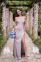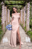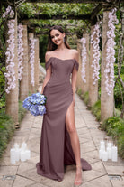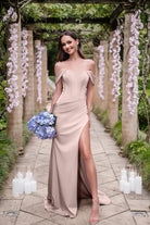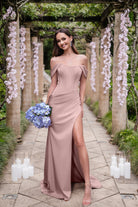 Introducing the Anastasia‚ is a show-stopping choice for the modern bridesmaid who wants to feel both elegant and confident. Featuring a romantic sweetheart neckline, this gown is enhanced by draped off-the-shoulder straps that add a touch of timeless allure. The visibly boned bodice provides structure while creating a flattering, sculpted silhouette. With delicate ruching across the stomach to enhance your curves and a daring high side slit for a dramatic finish, the Anastasia is both chic and unforgettable. Designed with stretch for a comfortable fit, this gown beautifully balances elegance with modern sophistication, making it perfect for an unforgettable celebration.