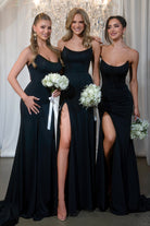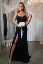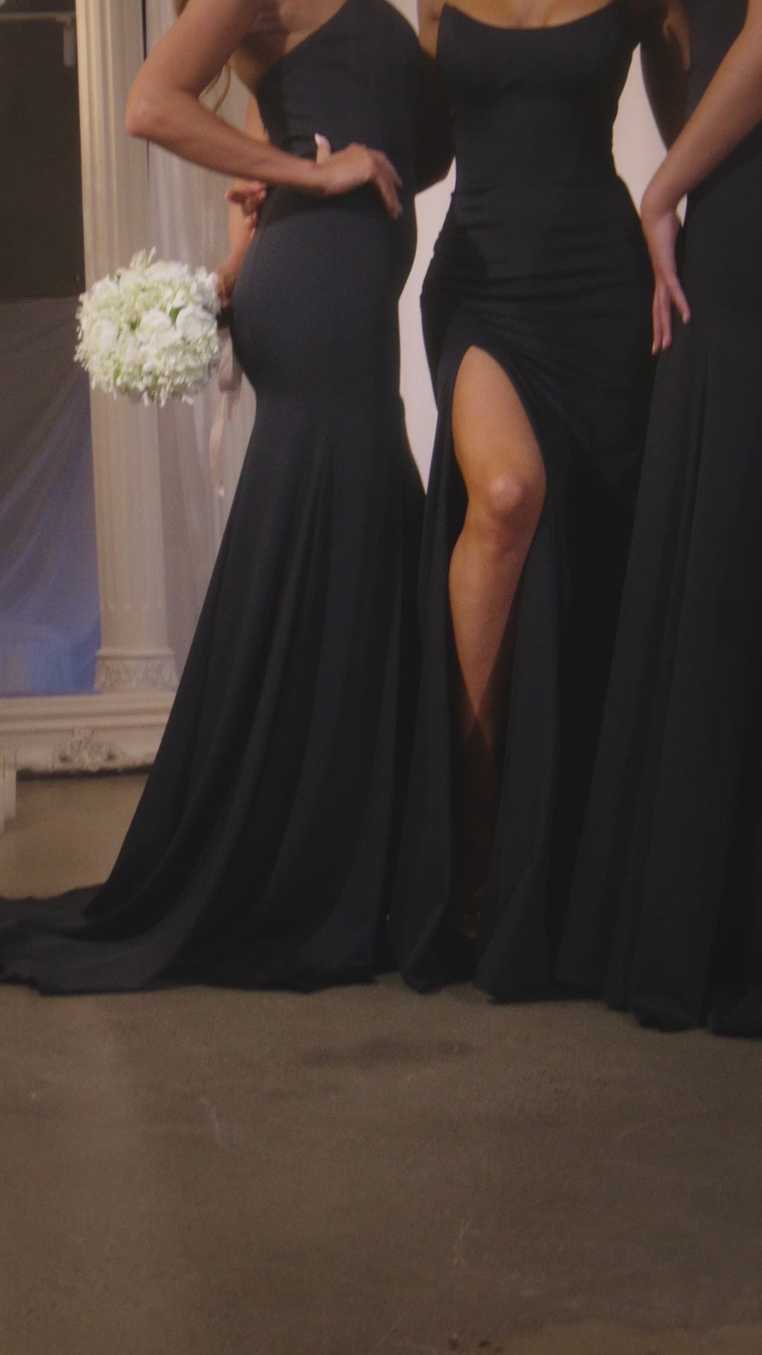 Introducing the Blair, a sleek and sophisticated strapless design that‚ is sure to make a statement. This form-fitting gown features a bold high slit, adding a touch of allure and elegance. Crafted from luxurious satin fabric with medium stretch, the Blair offers both a flattering fit and exceptional comfort and is the perfect choice for your bridesmaids.
