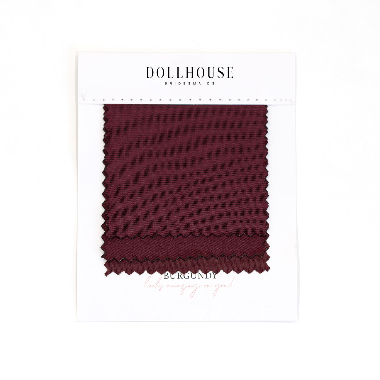 Want to see our stunning fabric options up close? We've made it easy! This swatch is available in one beautiful color, offered in three different fabrications‚ stretch chiffon, stretch satin, and stretch jersey.