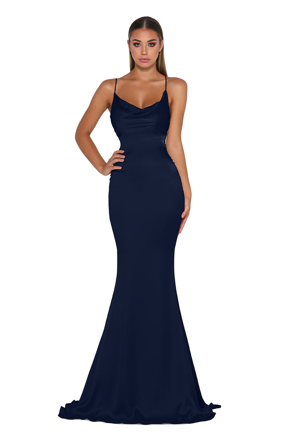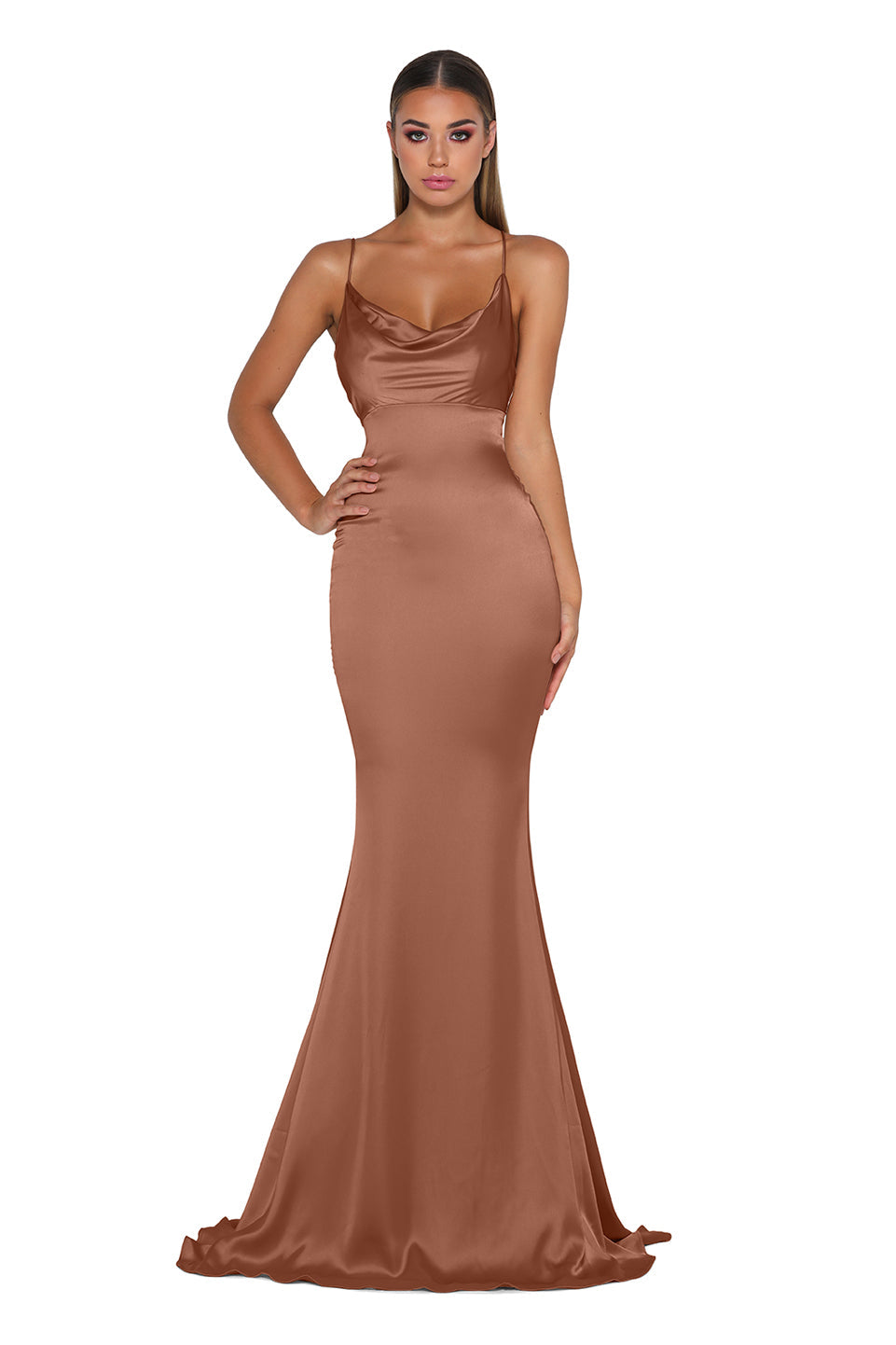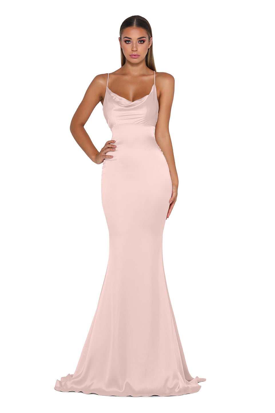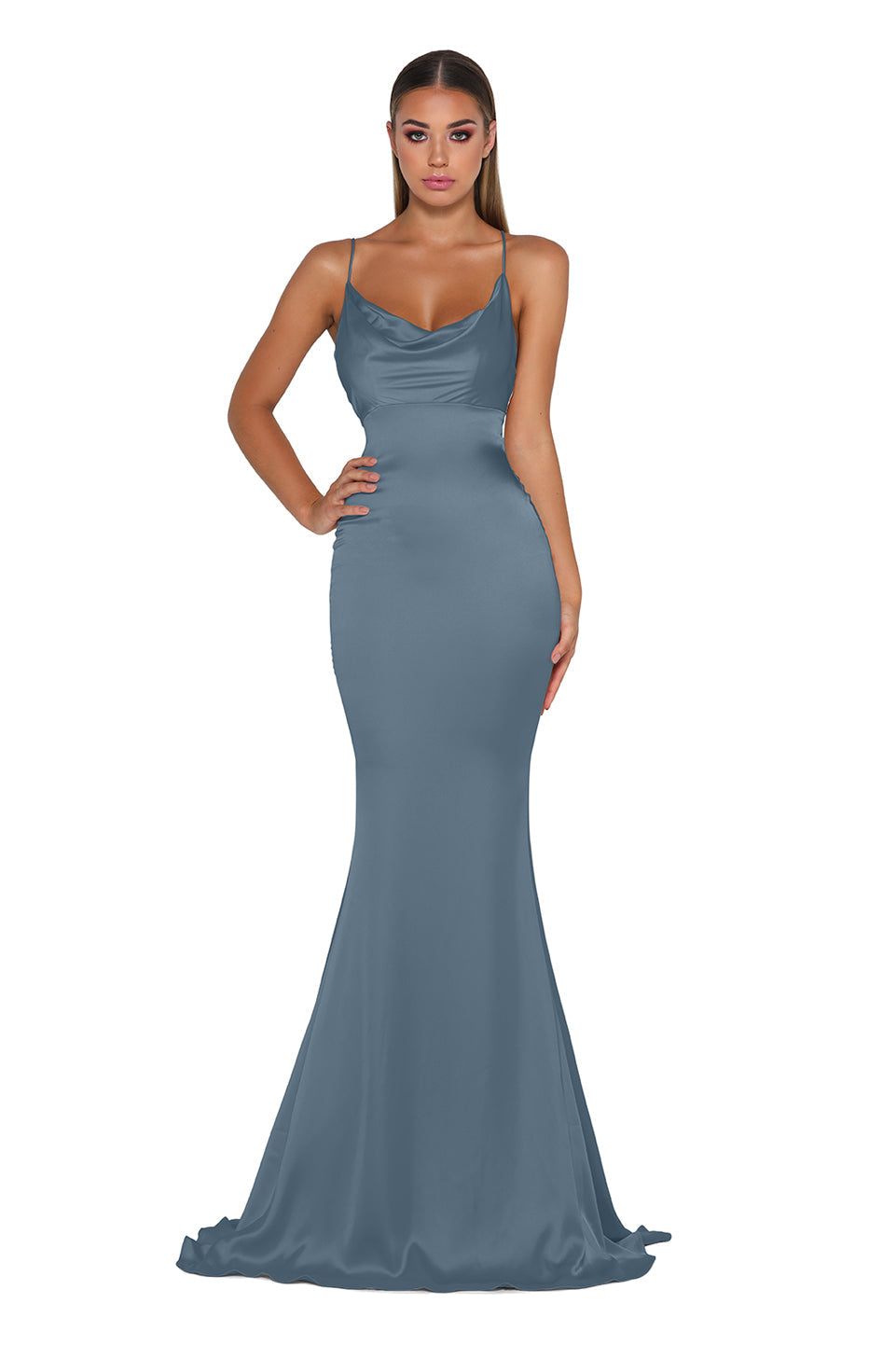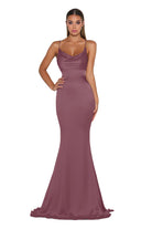 Introducing the Dana Gown – a sleek and sophisticated floor-length design that combines timeless elegance with modern allure. This fitted gown showcases a breath-taking low V-back with delicate criss-cross straps, adding a striking, feminine touch. The front of this draped neckline gown features a softly draped neckline, offering effortless style and grace. Crafted with a structured fit and low stretch, the Dana Gown is perfect for bridesmaids seeking a chic, refined look that makes a lasting impression. The form-fitting look of this draped neckline gown adds to its flair, making it an ideal choice for a variety of body types. Like many of our gowns, the Dana comes in a range of colors to fit numerous brides’ visions for the perfect day. The luxurious fabric drapes beautifully and feels soft against the skin, ensuring comfort for your bridesmaids throughout the day.
