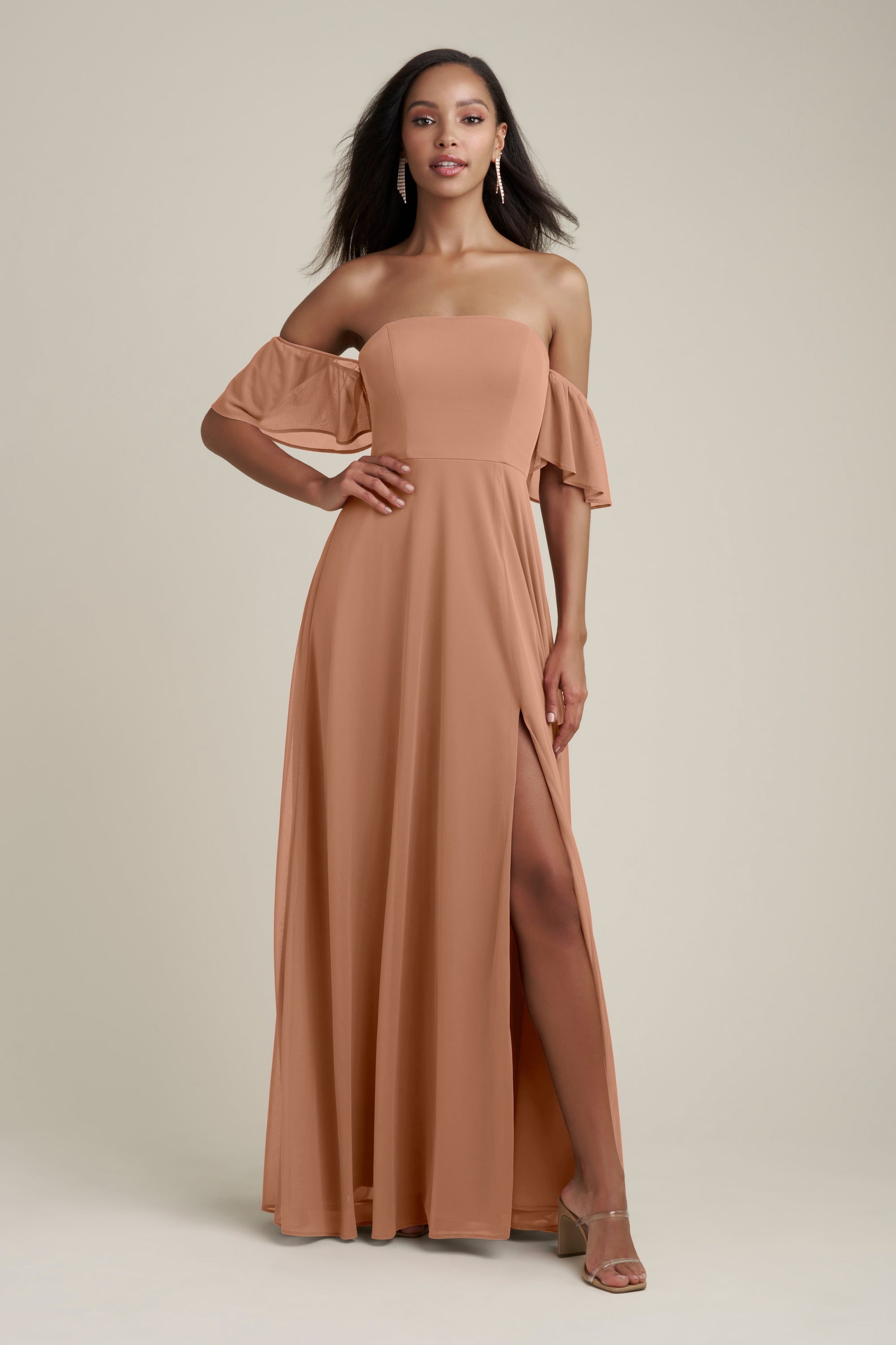 Colors can vary from screen to screen. For the most accurate match, we always recommend ordering a swatch before you choose your bridesmaids’ dresses.