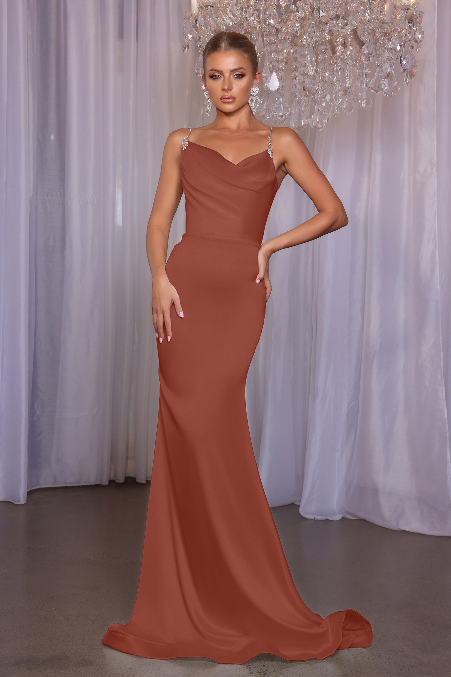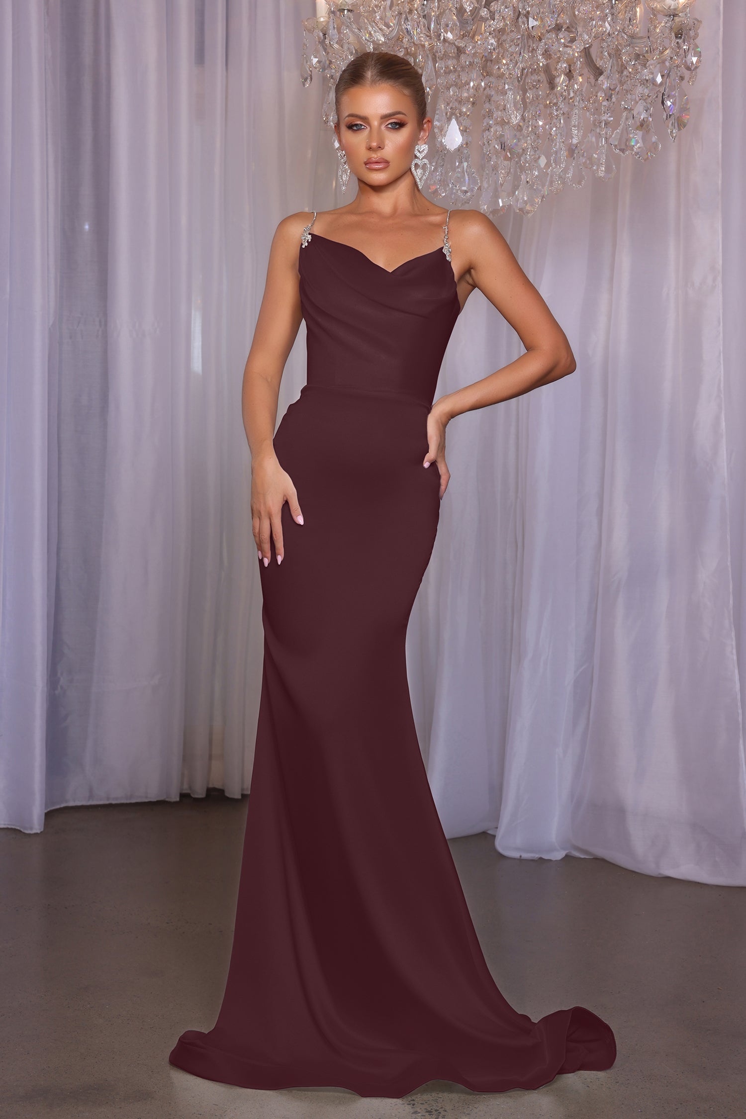 Introducing the Maella, a stunning mermaid fitted masterpiece designed to make your bridesmaids shine. This floor-length gown features exquisite ruching at the bodice, creating a flattering silhouette that hugs curves in all the right places. With its elegant design and dramatic flair, the Maella is perfect for those who want to make a bold statement. Its tailored fit ensures a polished look that enhances confidence and sophistication.