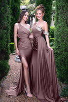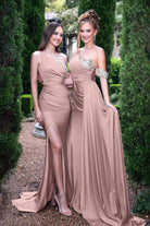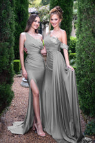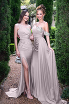 Introducing the Raya is a breath-taking one-shoulder design that radiates elegance and sophistication. Crafted from luxurious high-stretch fabric, this gown features a fitted bodice adorned with a delicate beaded appliqués that adds just the right amount of sparkle. The appliquéd arm band gives a modern, fashion-forward touch, while the sweeping side train creates a graceful, unforgettable silhouette. Designed for both style and comfort, the Raya is the perfect choice for bridesmaids who want to make a statement while enjoying every moment of the celebration.