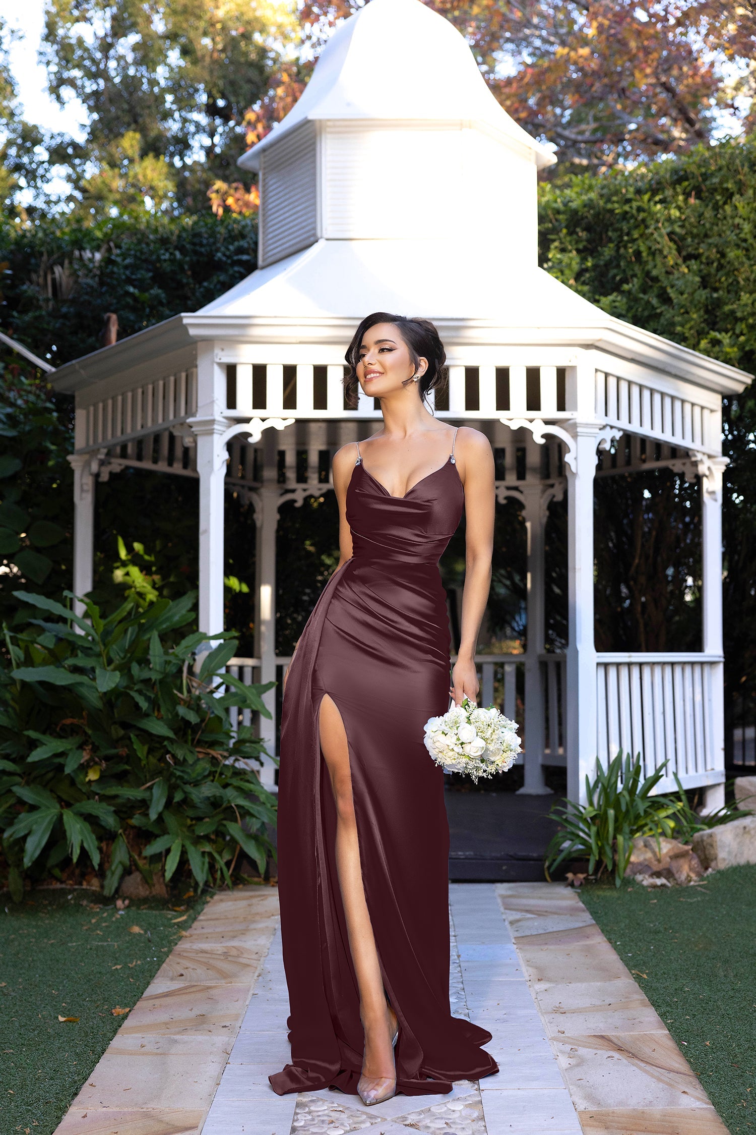 Introducing the enchanting Siera, a mermaid-fit masterpiece that will leave your bridesmaids feeling radiant on your special day! This stunning floor-length gown features exquisite ruching at the bodice that beautifully accentuates every curve, while the delicately beaded straps add a touch of sparkle and elegance. The graceful side skirt offers a captivating silhouette, making it perfect for twirling on the dance floor or gliding down the aisle. Designed with an impeccable fit in mind, the Siera promises to make a statement, ensuring your bridesmaids look effortlessly chic and glamorous as they celebrate your love story.