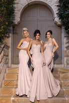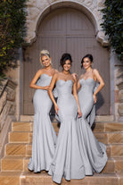 Introducing the exquisite Tinker, a breathtaking creation that celebrates elegance and sophistication for your bridesmaids. Sculpted to perfection, this gown features a stunning sweetheart neckline on a strapless bodice. The show-stopping oversized bow at the back adds a touch of whimsy, making a striking statement from every angle. The mermaid skirt hugs the body before gracefully flaring to the floor, culminating in a grand train that exudes drama and romance. The impeccable fit ensures your bridesmaids will feel both confident and radiant as they celebrate your special day. Elevate your bridal party's look with the Tinker where timeless beauty meets unforgettable style!