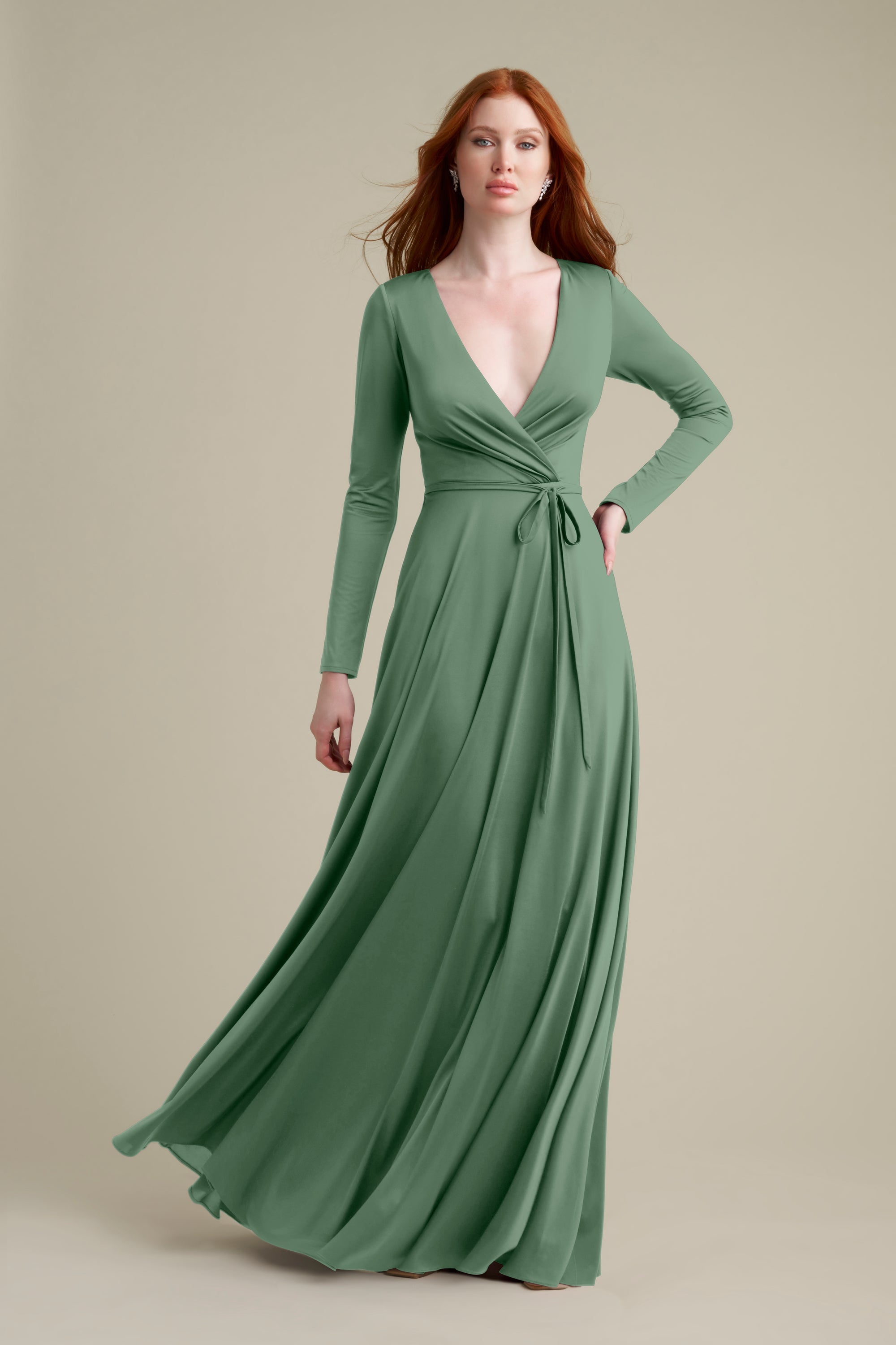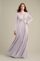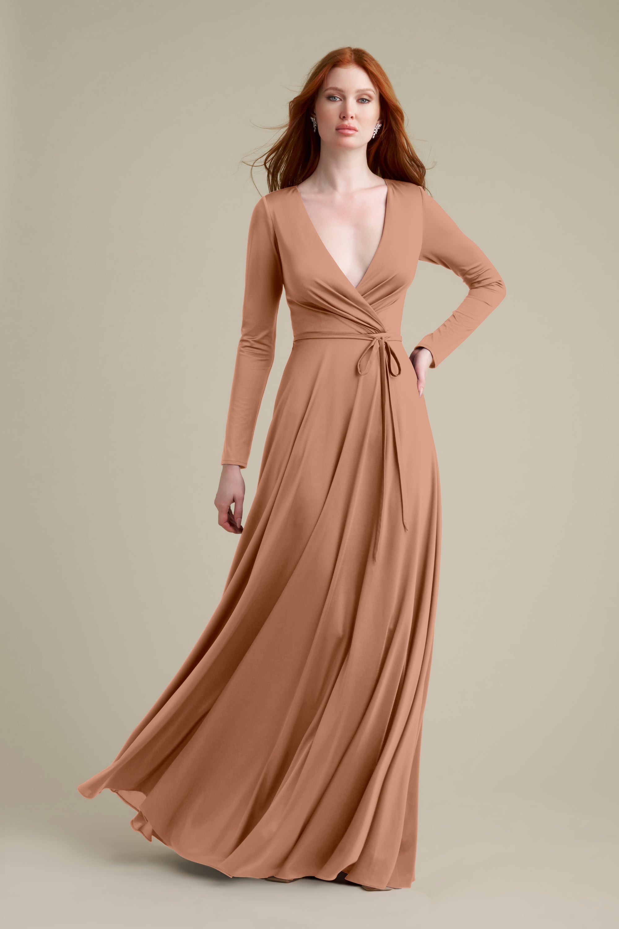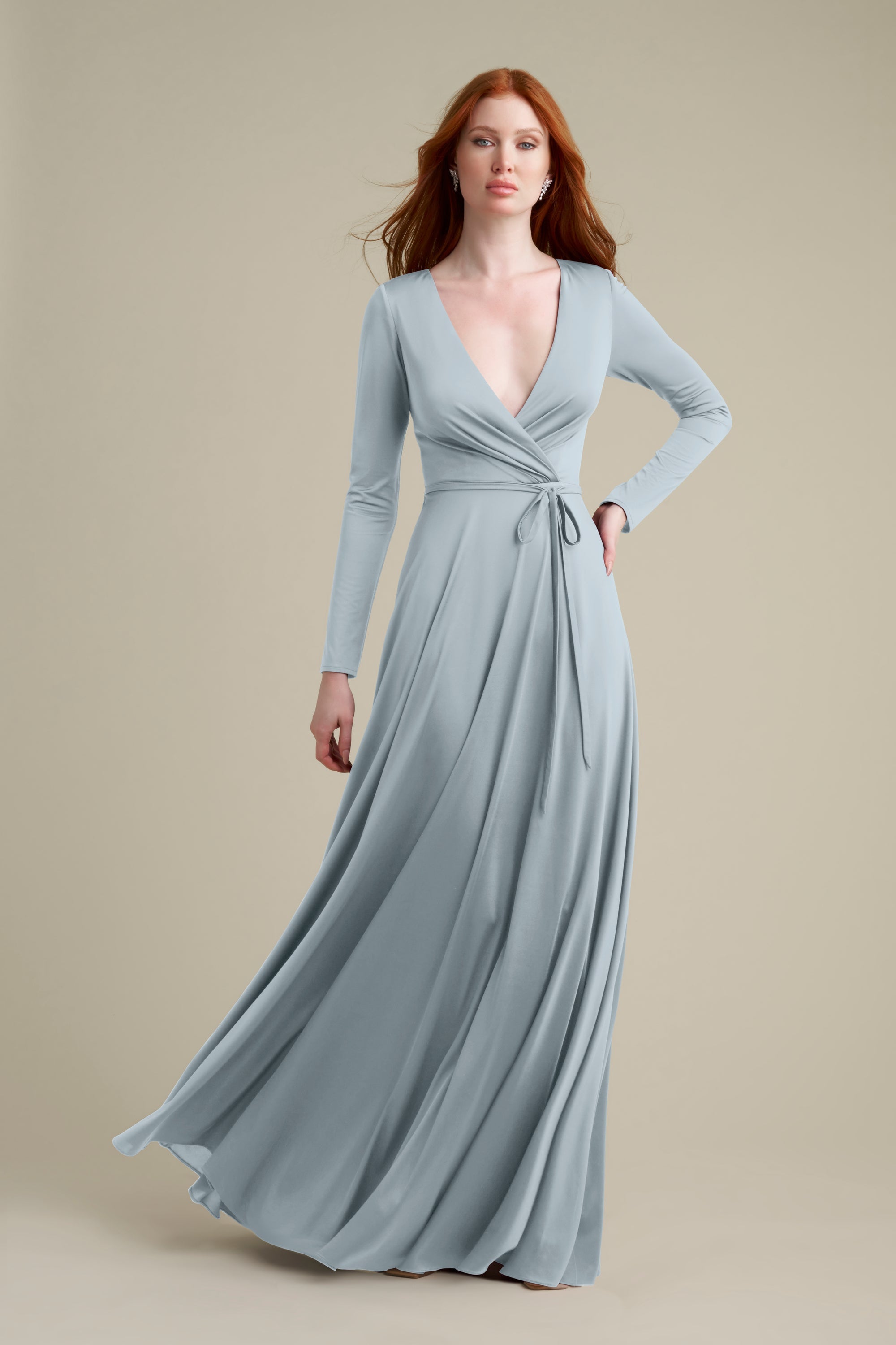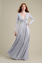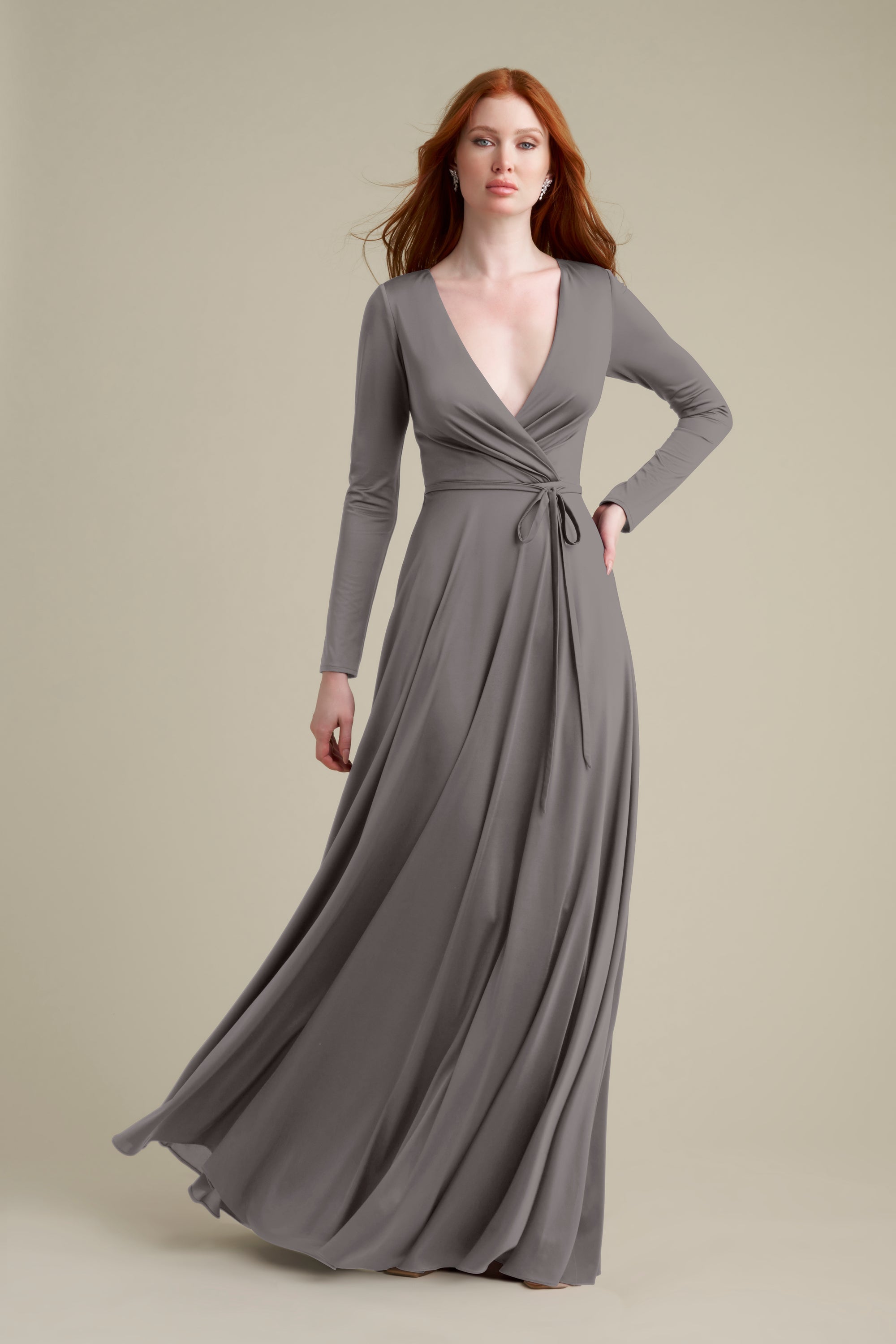 Willa is the perfect gown for your cool-weather wedding: a wrap dress effect finished with fitted, full-length sleeves.