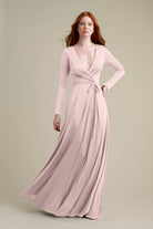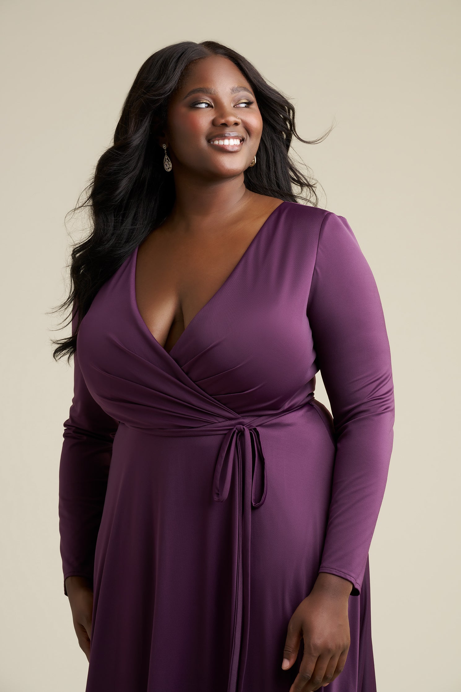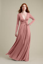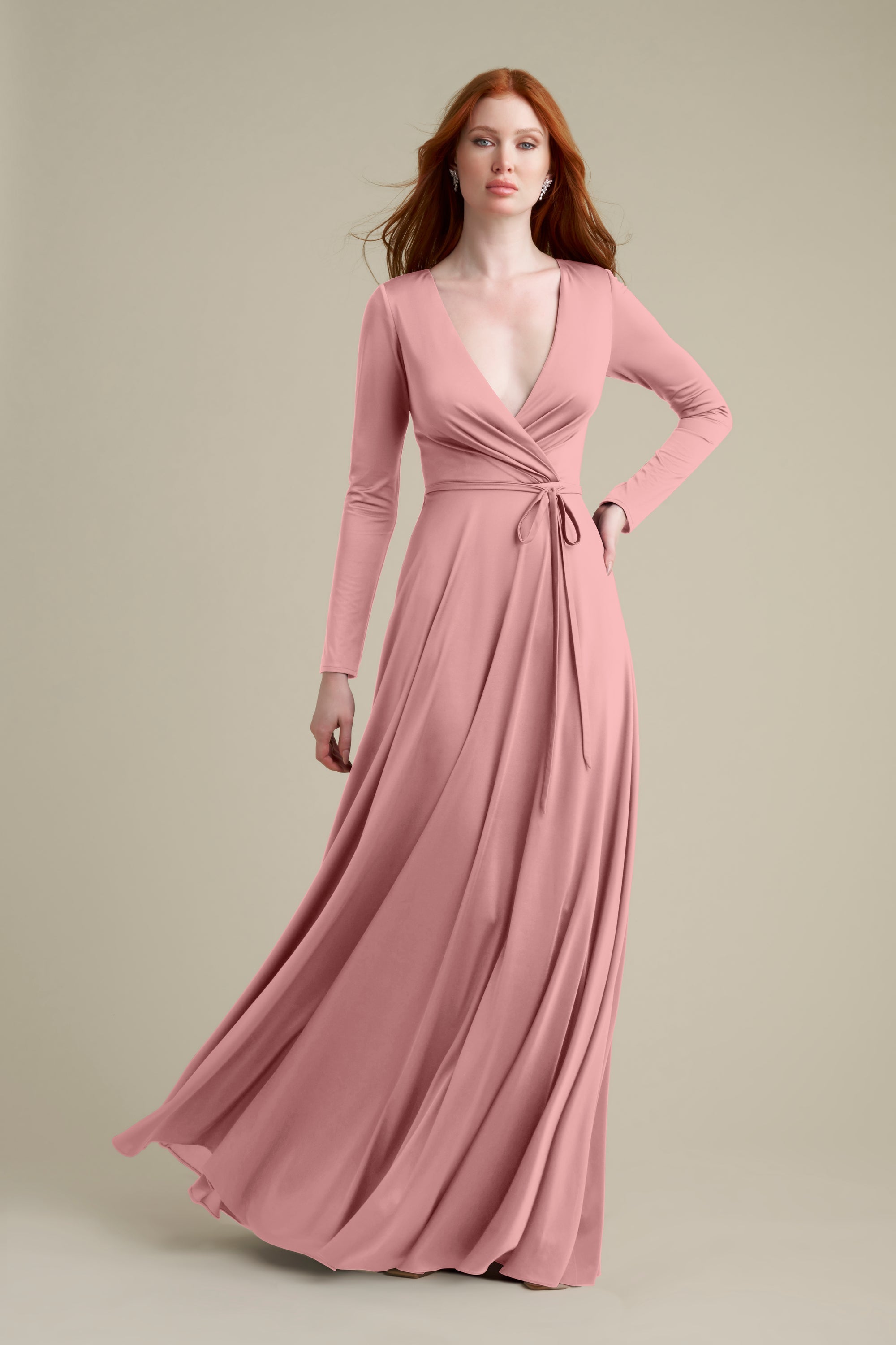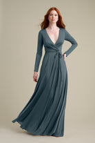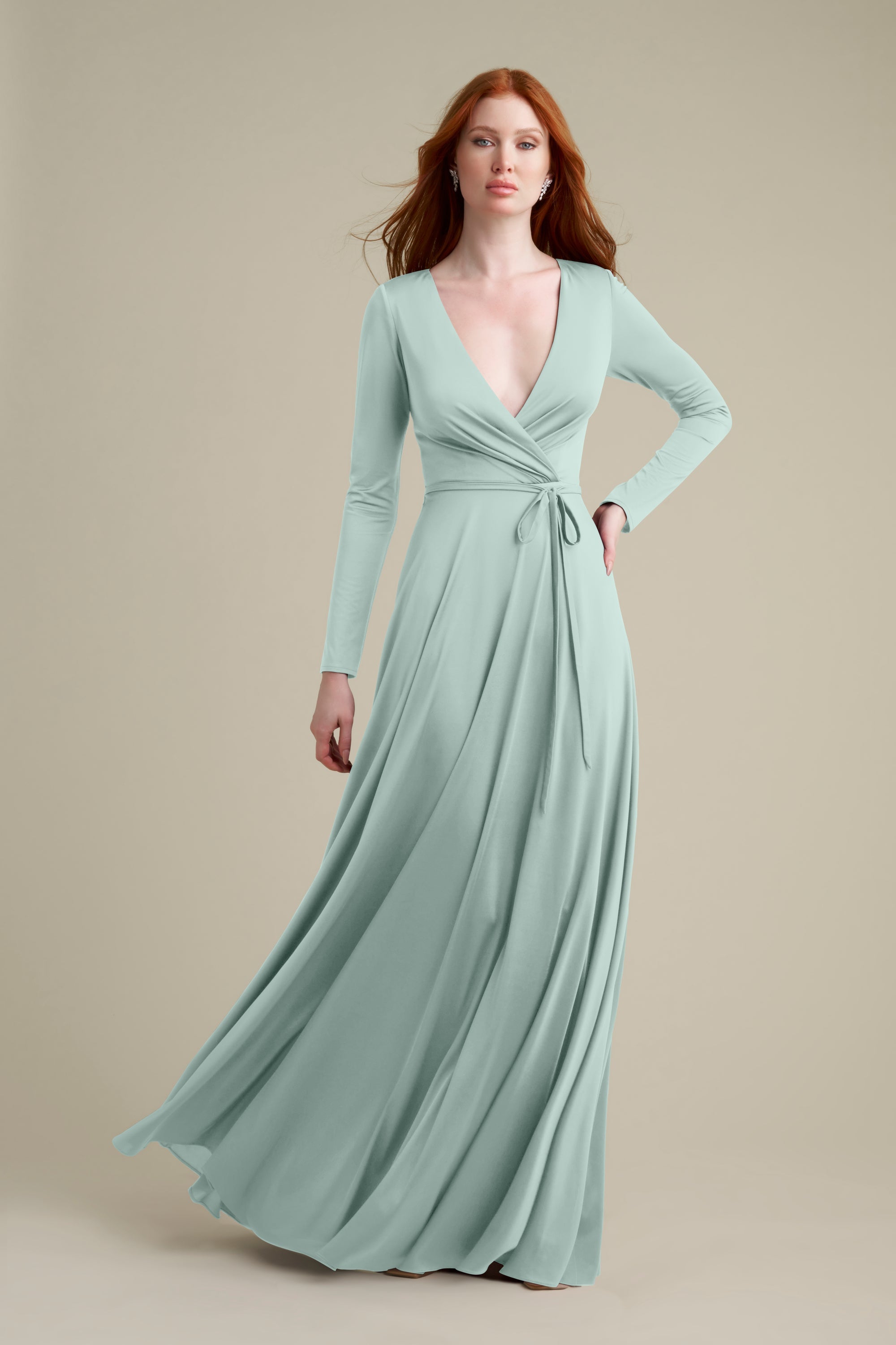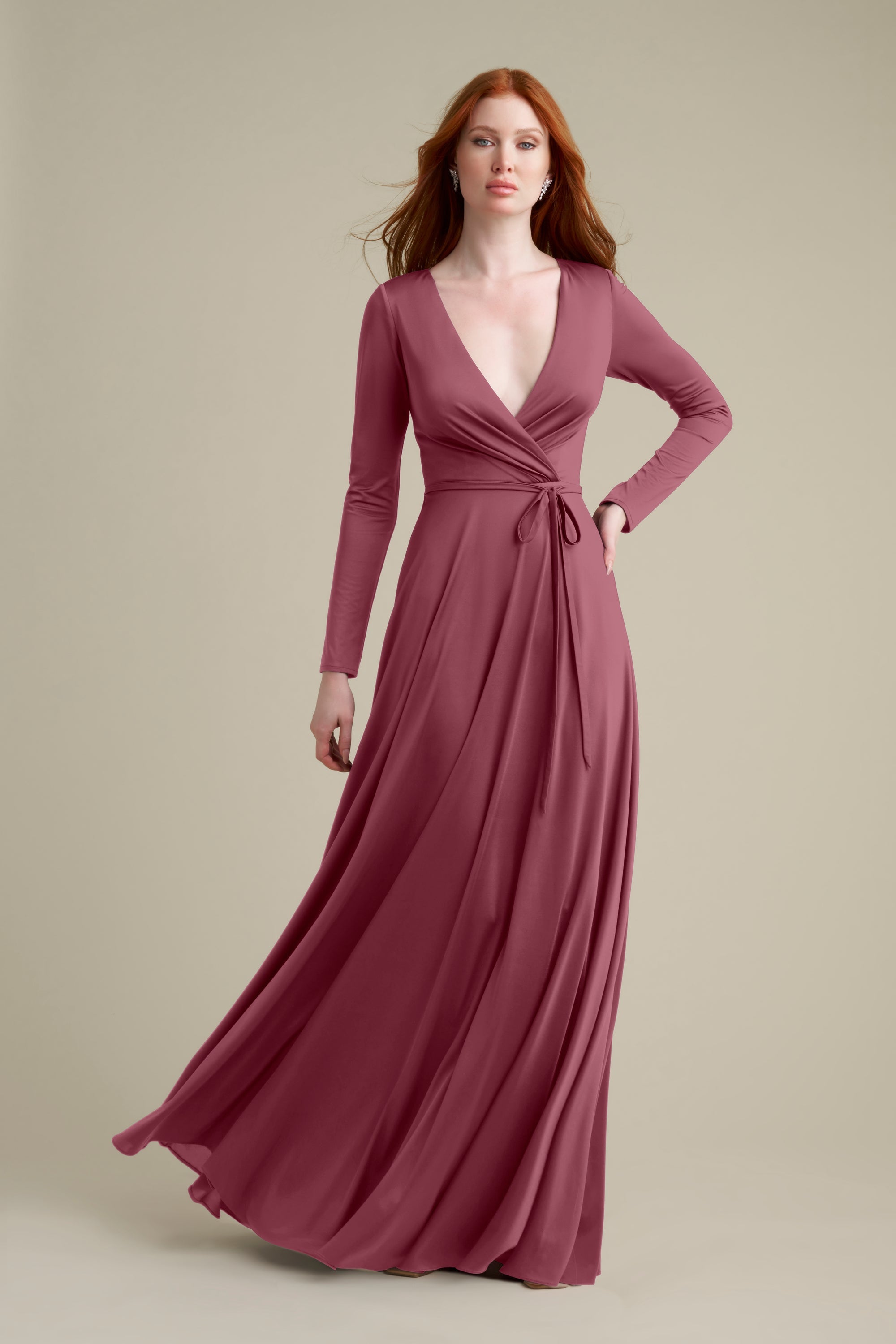 Willa is the perfect gown for your cool-weather wedding: a wrap dress effect finished with fitted, full-length sleeves.