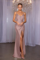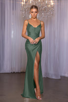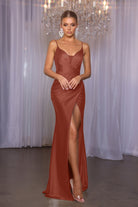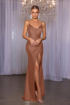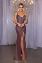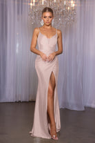 Introducing the Willow‚ is a striking blend of elegance and allure, designed for the confident bridesmaid who loves to make a statement. This gown features a chic V-front neckline that beautifully frames the bust, while the figure-hugging silhouette enhances your curves in all the right places. Delicate ruching across the stomach adds a flattering touch, while the daring high slit brings a bold yet sophisticated edge. With a slight train in the back for a graceful finish for a comfortable, flexible fit, the Willow is perfect for a day full of celebration and unforgettable moments.