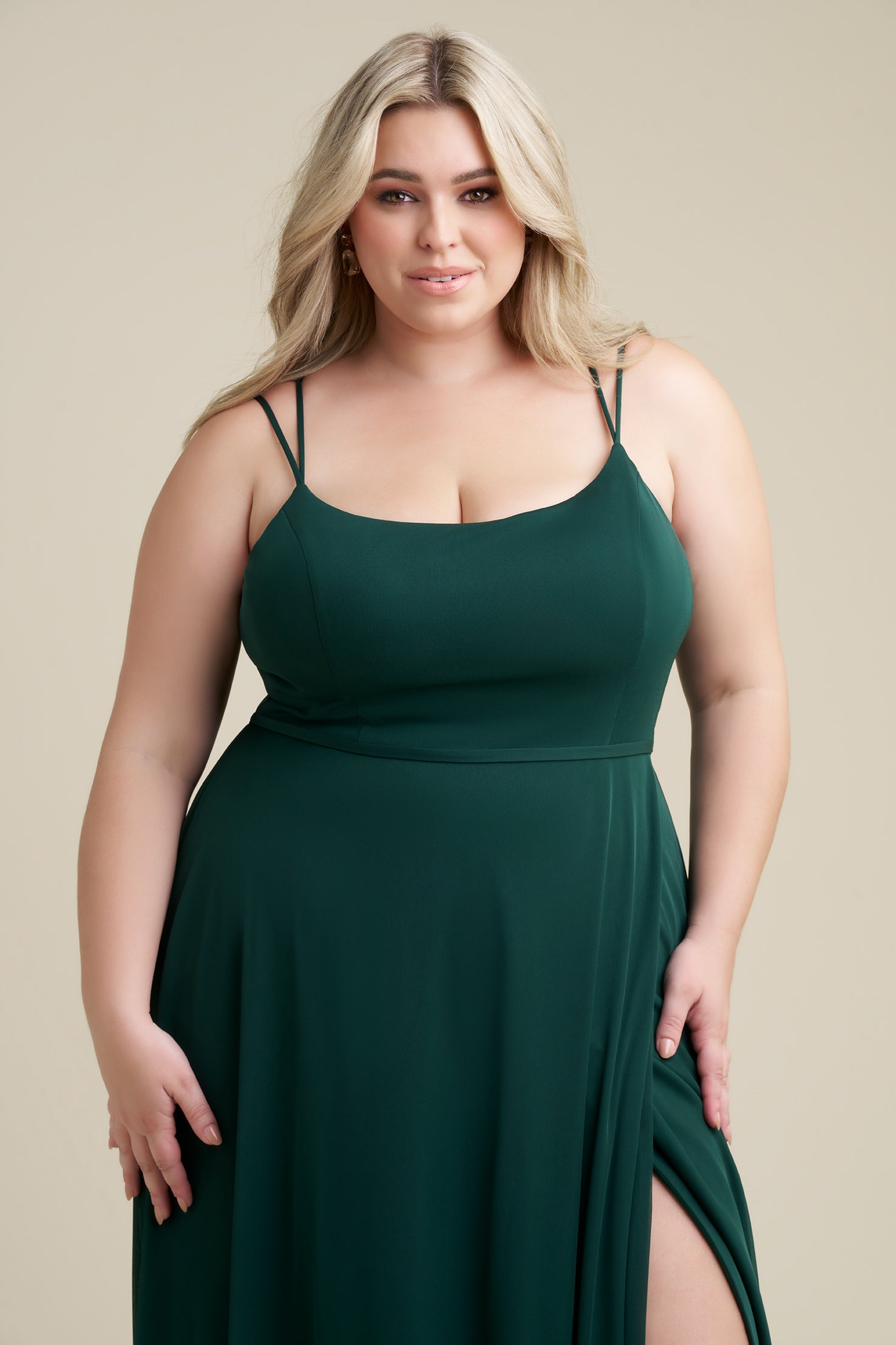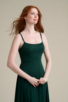 Elegant double straps and a softly scooped neckline pair with Zora's A-line skirt.